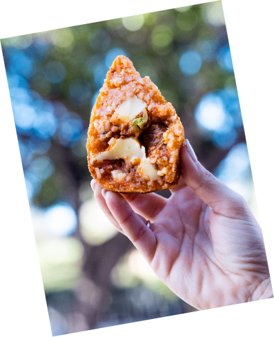 Orgoglio dello street food siciliano, i nostri “pezzi” di tavola calda sono una vera esperienza mistica. Dalle classiche pizzette tonde alle specialità locali più autentiche come arancini, cipolline, bolognesi, bombe, cartocciate e tanto altro. Ogni morso, un tripudio di sapori, un mondo da scoprire. Perché scegliere? Provali tutti!